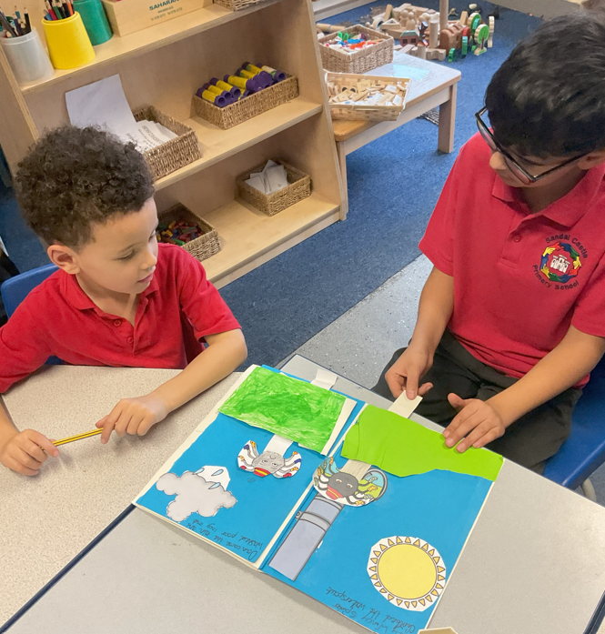 Year 5 have been busy making and creating three different interactive mechanisms, and hiding the mechanical elements with layers using spacers where necessary to create their pop-up books.